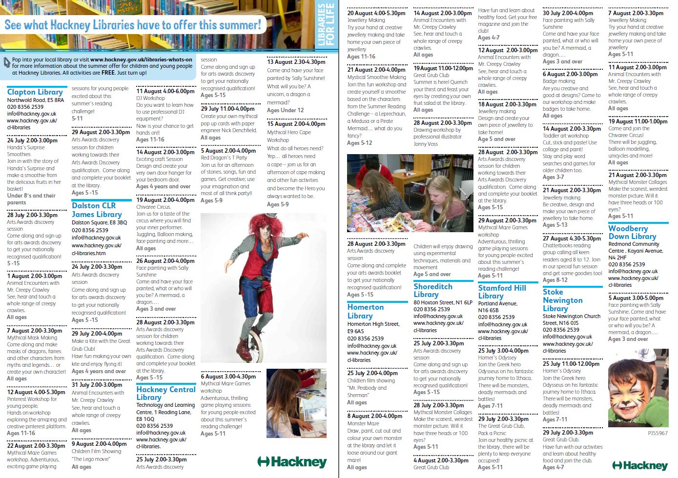 Lastly, a list of events for children and young people being put on by the library (and not just our own CLR James Library: All Hackney libraries are getting involved). Again these are all free: All your kids need to do is turn up. Click the 3rd and last of the thumbnail images below to see the list.