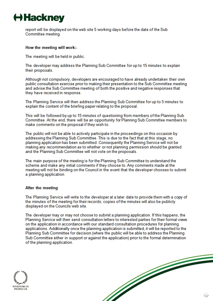 Those of you familiar with Hackney Council’s DAAP (Dalston Area Action Plan) know that Kingsland Shopping Centre is living on borrowed time. The planned redevelopment of this area is central to the council’s vision of an updated, modern Dalston. To this end, the first of what is sure to be many public meetings is scheduled for Tuesday next week, February 25th, at 6.30pm in the Stoke Newington Town Hall, and everyone is invited. Although not able to participate in the discussions, members of the public will be able to sit in on the presentation a developer will be making to the council, about their plan for the redevelopment. Full details of exactly what will be happening are included in the document thumb-nailed below. Click on each image to see it full size. (The link at the bottom of page 1 can be followed HERE.)