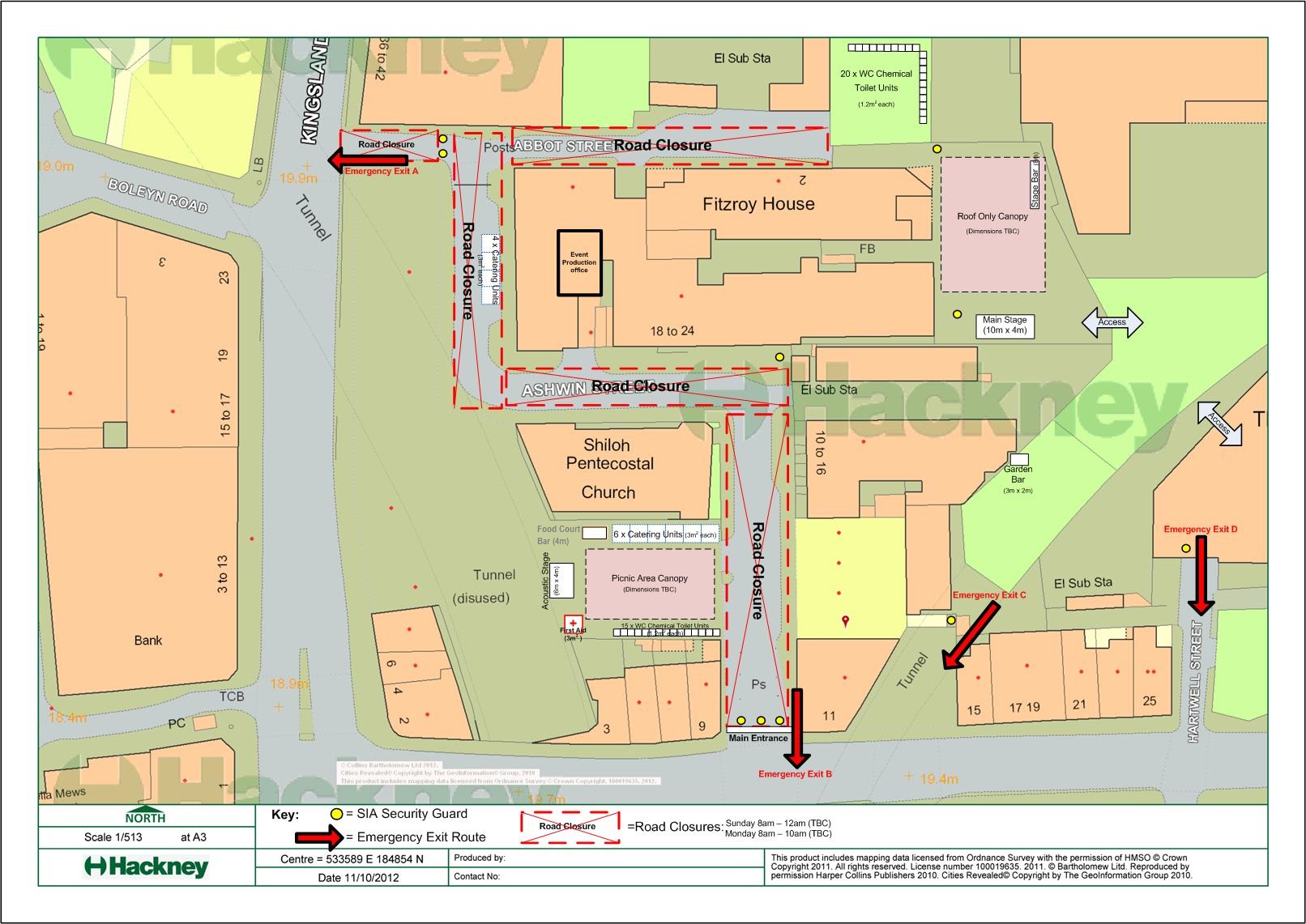 The fifth Land of Kings (2013) will take place on Sunday May 5th and we will also be debuting a new festival the following day (Monday 6th) aimed at local families, to be called “Land of Kids”. Both festivals are collaborations with a number of local artistic and cultural venues such as Arcola Theatre, Bootstrap Company (including Print House Gallery, The Bunker and Dalston Roofpark) and Café Oto. The night time part of the programme also includes venues across the neighbourhood such as Vortex Jazz Club, The Alibi, Servant Jazz Quarters, Rio Cinema, Birthdays, Shacklewell Arms etc.In previous years the festival has taken place largely in the area’s indoor music and arts venues as well as a few temporary event spaces for which we have applied for Temporary Events Notices (TEN). We are planning an outdoor element to the festival this year, on Ashwin Street and in Abbot Street car park, and for that we’re required to apply for a temporary Premises License as the number of people we are expecting is more than 499 (the limit for running an event under a TEN).As part of the planning for this year’s event we wanted to check in with local residents groups to share our plans as well as what we will be doing to limit the impact on the area and work with local people to make it as successful and smooth running an event as possible for all. I wondered if you’d be able to share this email and the attached site plan with your respective groups. The main part of our license application pertains to the car park at the end of Abbot Street where we’re hoping to build a temporary live music stage, to run in the afternoon until 10pm on Sunday 5th May, and until 7pm on Monday 6th May.