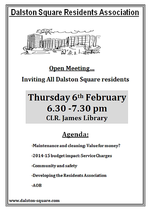 Wednesday, 29 January, 2014 | Categories: Agenda, Community, Meeting, Opinion | Tags: 2014/15 Budget, Buildings & Maintenance, Consort, Dalston Futures, DSRA, Hackney Unites, Meeting | Leave a comment