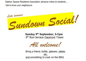 Hello friends and neighbours. As you all know, we held a DSRA meeting during the week and I will be posting the minutes of that meeting soon. In the meantime, we did finalise plans for a late-summer get-together. Open to all residents of Dalston square (and any friends you wish to bring with you), it will be a BBQ event held on the 9th floor terrace of Gaumont tower. The RA will (fingers crossed) supply the grill, so bring some food & drink (something to share?) a plate and a glass, and come to meet your neighbours! Click the thumbnail image below to see the poster with the details.
